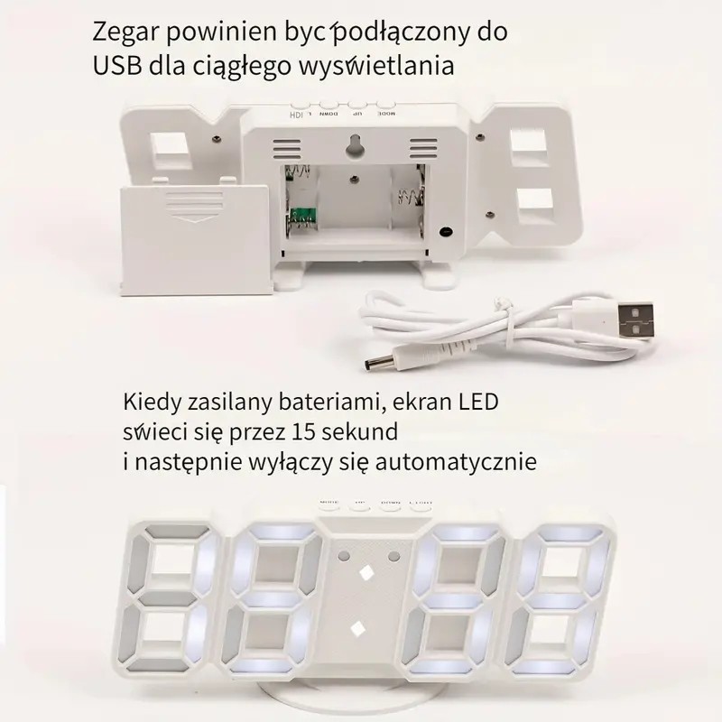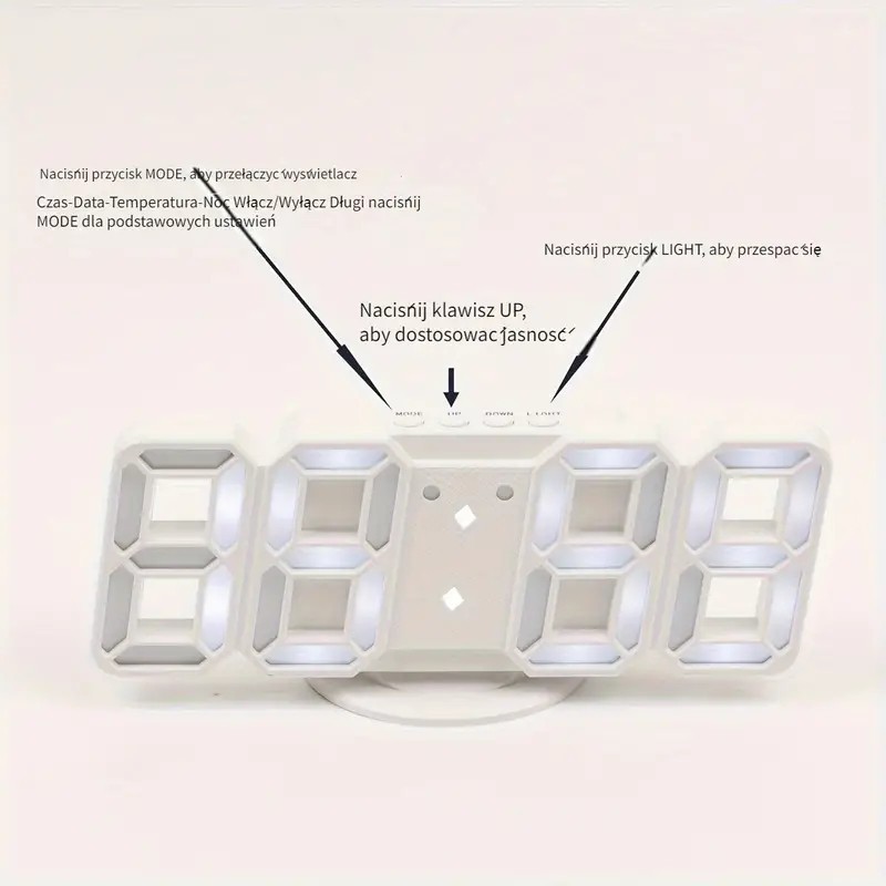 این ساعت با صفحهای به قطر ۱۶ سانتیمتر و نمایشگر بزرگ، زمان را به صورت عددی در هر دو حالت ۱۲ و ۲۴ ساعته نمایش میدهد و به دلیل نور LED سفید، حتی از فاصله دور نیز خوانایی بالایی دارد.