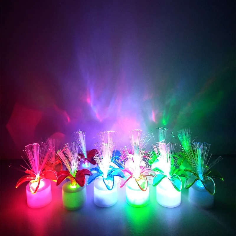 شمع وامر led مدل فیبرنوری چشمک زن بسیار درخشان و با نورهای جذاب رنگی به صورت چشمک زن طراحی شده است. فیبر های نوری که روی گل شمع وامر led مدل فیبرنوری چشمک زن تعبیه شده است پخش نور آن را دو چندان میکند.