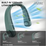 این پنکه با طراحی ارگونومیک و ساختار سبک خود، به راحتی روی گردن قرار میگیرد و امکان استفادهی طولانیمدت بدون احساس خستگی را فراهم میسازد.