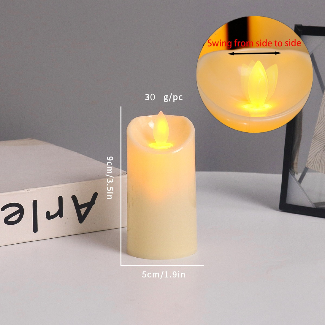 این مدل با ابعاد استاندارد ۹×۵×۵ سانتیمتر و وزن ۲۹ گرم طراحی شده تا روی هر سطوحی بهراحتی قرار بگیرد و با هر سبک دکوراسیونی—from مینیمال تا کلاسیک—هماهنگ شود. فیتیله پلاستیکی با قابلیت شعله متحرک یکی از جذابترین ویژگیهای این شمع است؛ نور شمع بهصورت لرزان و طبیعی تابیده میشود و جلوهای دقیقاً شبیه شعله واقعی ایجاد میکند، بدون اینکه گرما تولید کند یا خطری داشته باشد. این طراحی واقعینما، آن را برای استفاده در فیلمبرداری، عکاسی و چیدمانهای خاص بسیار مناسب کرده است.