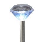 بدنه چراغ الماس از استیل ضدزنگ و پلاستیک مقاوم ساخته شده است که در برابر رطوبت، باران، تابش مستقیم آفتاب و تغییرات دمایی از منفی ۲۰ تا مثبت ۶۰ درجه سانتیگراد مقاومت بالایی دارد. این محصول با وزن سبک ۷۰ گرم و ابعاد ۹×۳۰ سانتیمتر طراحی شده و از دو بخش اصلی شامل حباب الماسی شکل و پایه کاشتنی تشکیل شده است که بهراحتی در زمین یا گلدان نصب میشود.