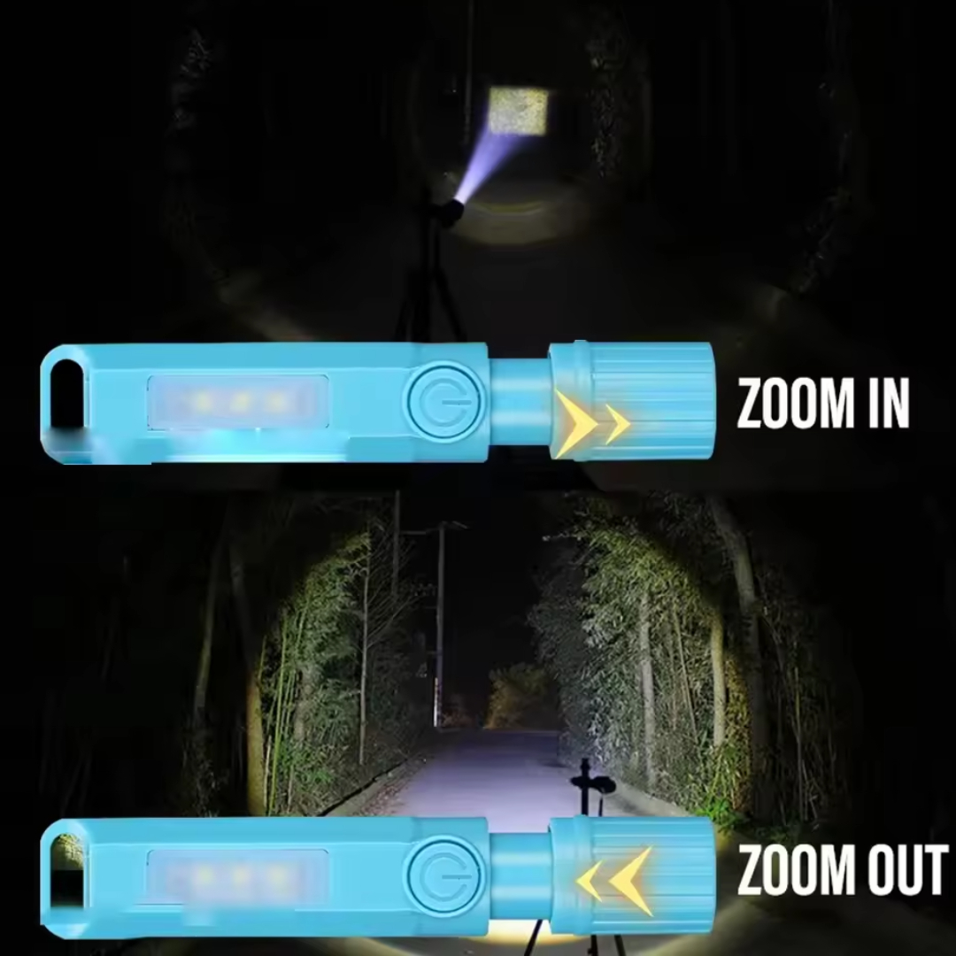 یکی از مهمترین ویژگیهای این چراغ قوه، قابلیت زوم (Focus Adjustable) است که امکان تنظیم نور از حالت پخش و گسترده (Flood) برای روشن کردن محدودههای نزدیک، تا حالت نقطهای و متمرکز (Spot) برای دستیابی به برد بیشتر تا ۳۰ متر را فراهم میکند. این ویژگی باعث میشود XJ-811 هم بهعنوان چراغ قوهای مخصوص فعالیتهای نزدیک و هم برای ردیابی یا پیدا کردن مسیر در محیط تاریک مورد استفاده قرار گیرد.
